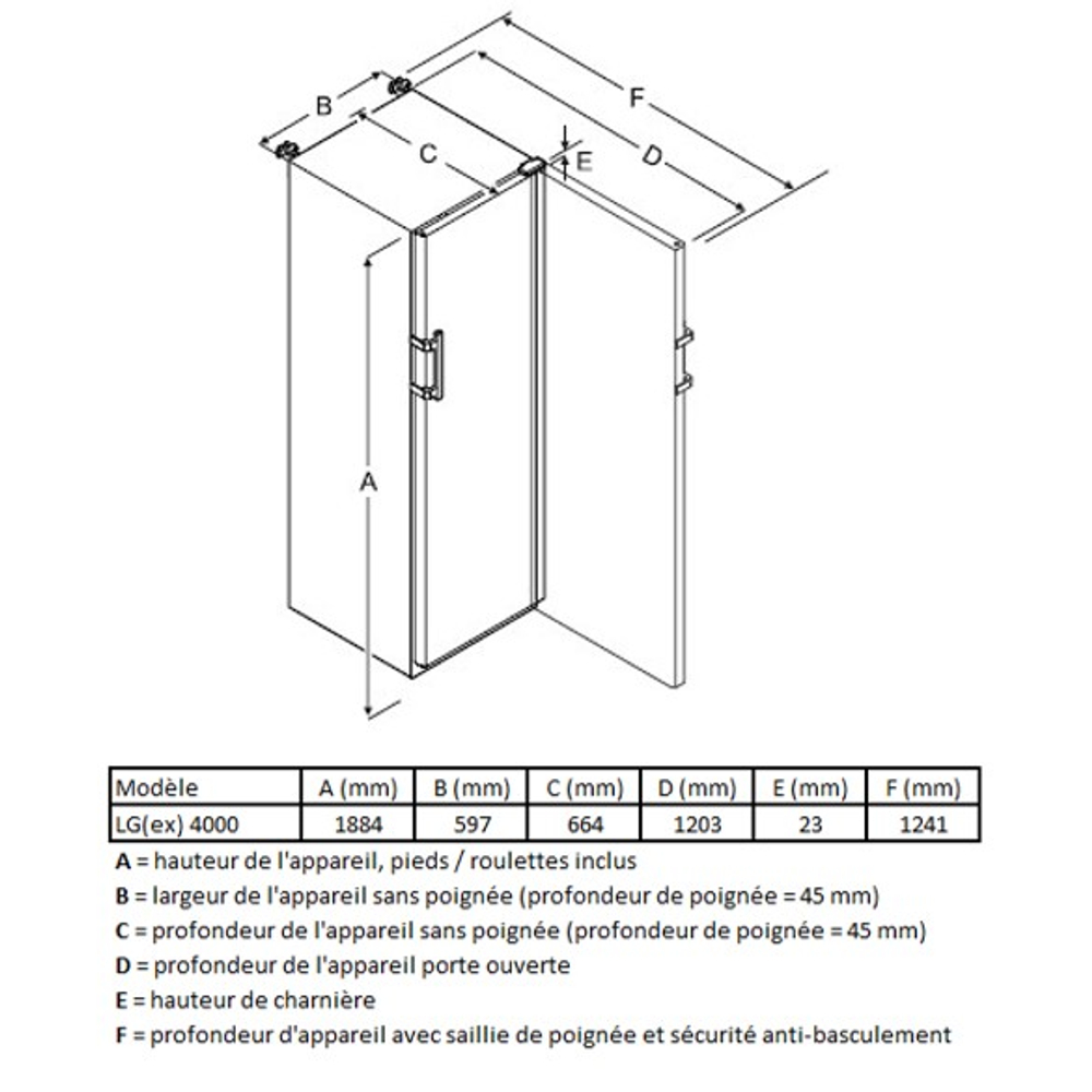 - Dimensions (LxPxH) (mm) 597x654x1884