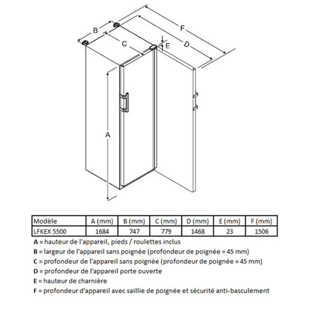 - Dimensions tablettes verre (LxP) (mm) 645x557