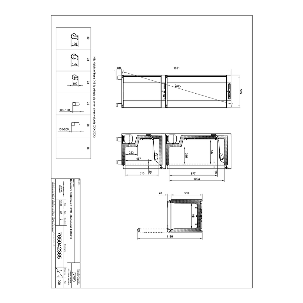 - Cuve (LxPxH) (mm) 461x437x644 + 461+315+233