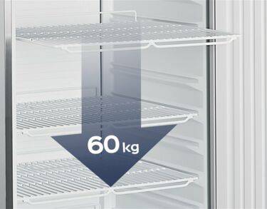 Grilles en acier plastifié charge max 60 kg, extractibles avec porte ouverte à 90°.
