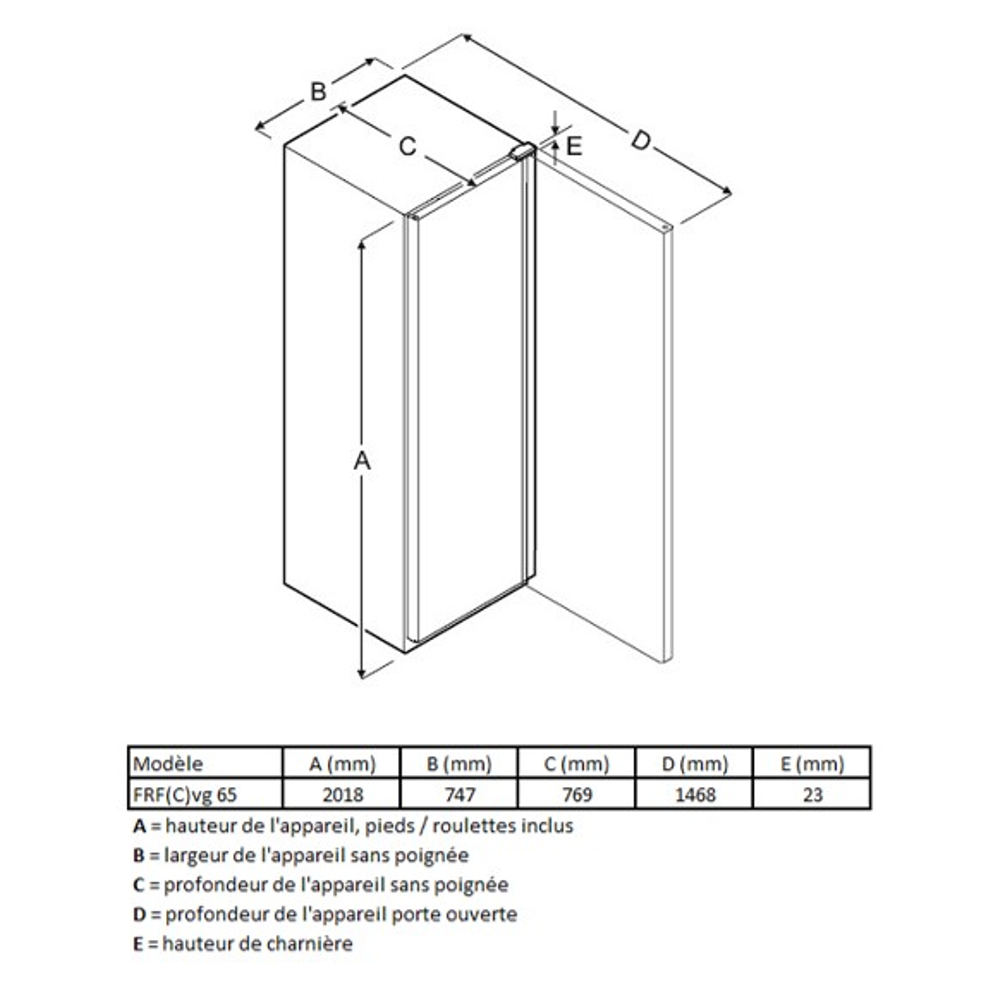 - Hauteur sans pieds (mm) 1868