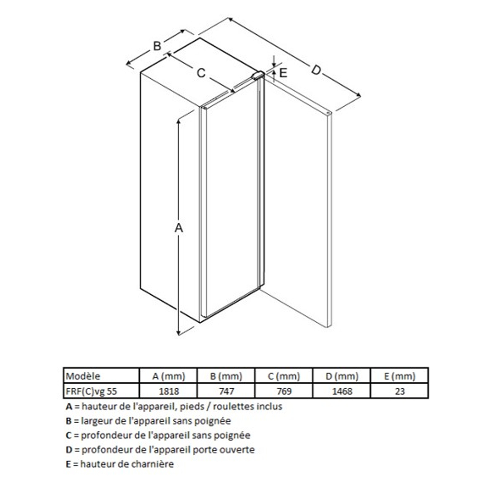 - Hauteur sans pieds (mm) 1668
