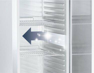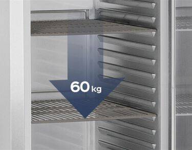 Grilles en acier plastifié charge max 60 kg, extractibles avec porte ouverte à 90°.