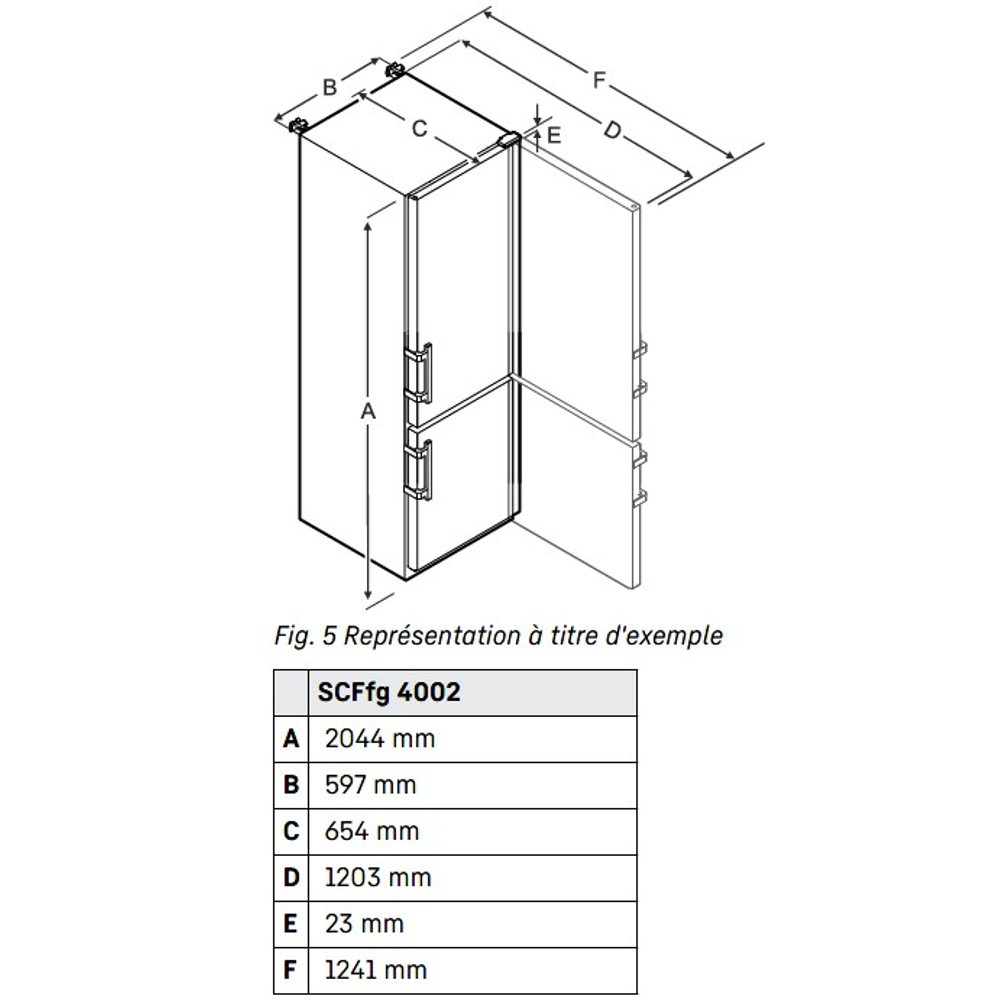 Combiné 5°C ± 3°C et -20°C, 377 litres, porte pleine