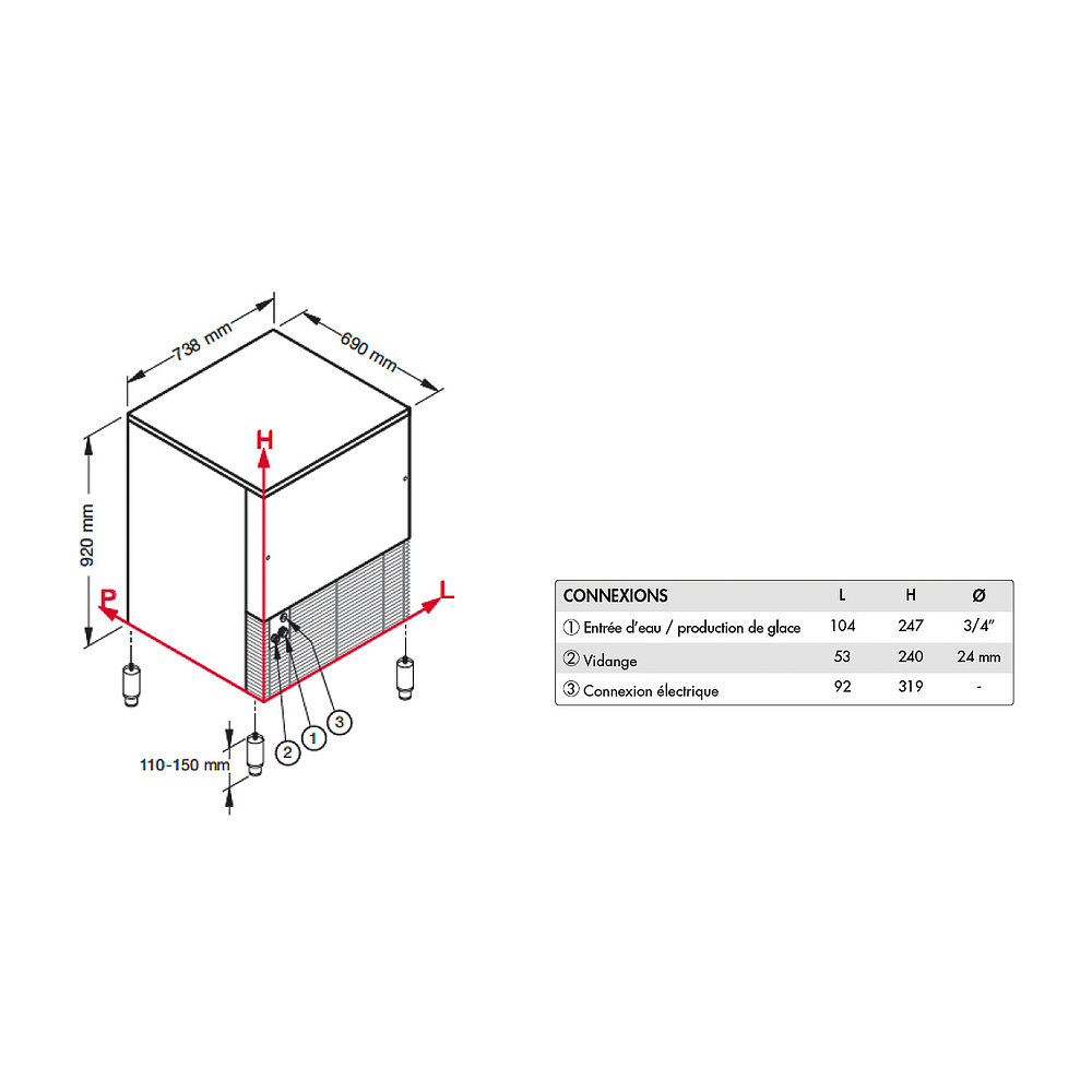 Livrées avec tuyau d’arrivée d’eau, d’évacuation et pelle à glace.