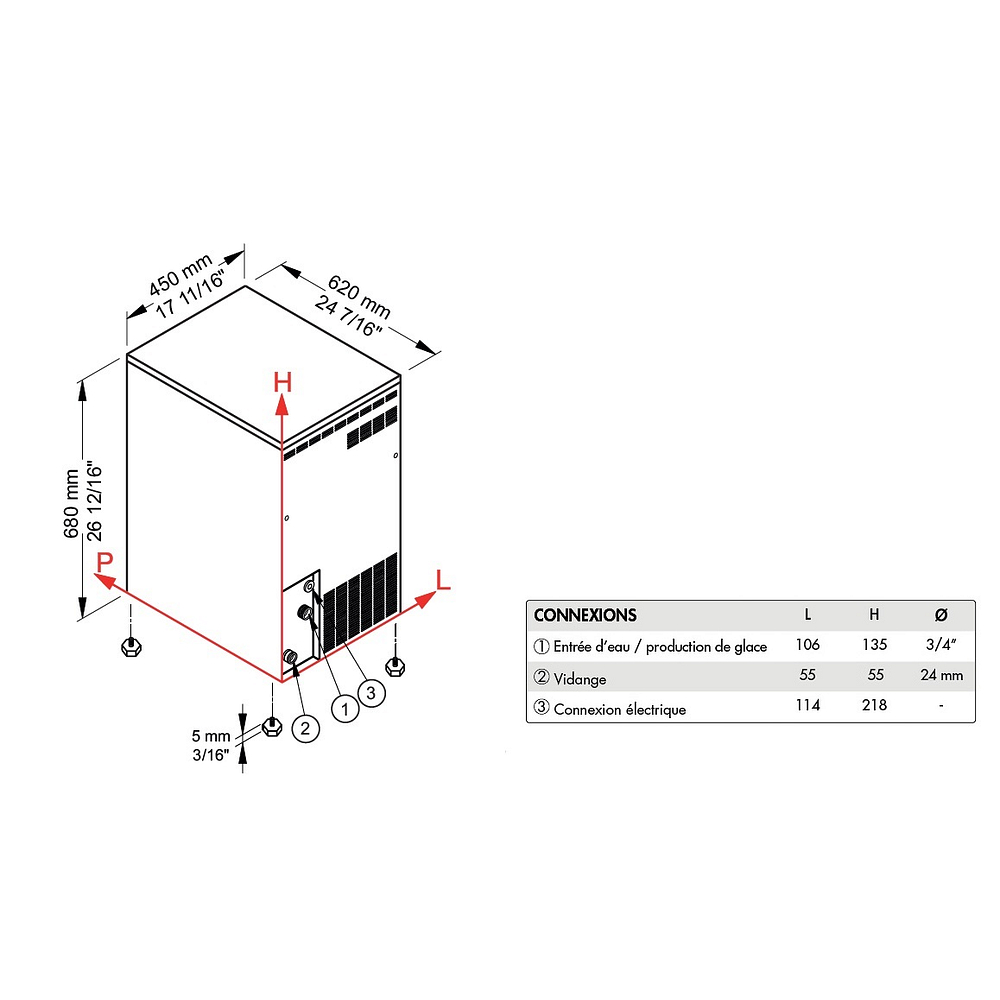 Livrées avec tuyau d’arrivée d’eau, d’évacuation et pelle à glace.